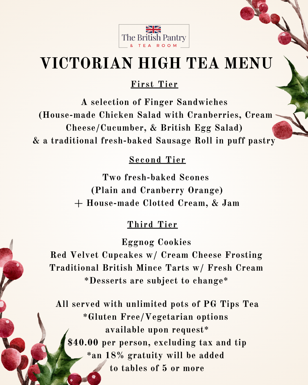 "What a great experience! The tea was delicious, the selections of finger sandwiches, scones and desserts were phenomenal, and the atmosphere was delightful! All the food was freshly prepared and delicious. Many great treasures and pantry items in the shop. I look forward to visiting again."